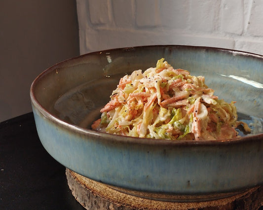 Ingredientes: Cenoura, Couve Lombarda, Maionese, Vinagre Sidra, Sementes de Papoila, Açúcar Branco, Sal. Alergénios: Ovos, Sulfitos, Pode...