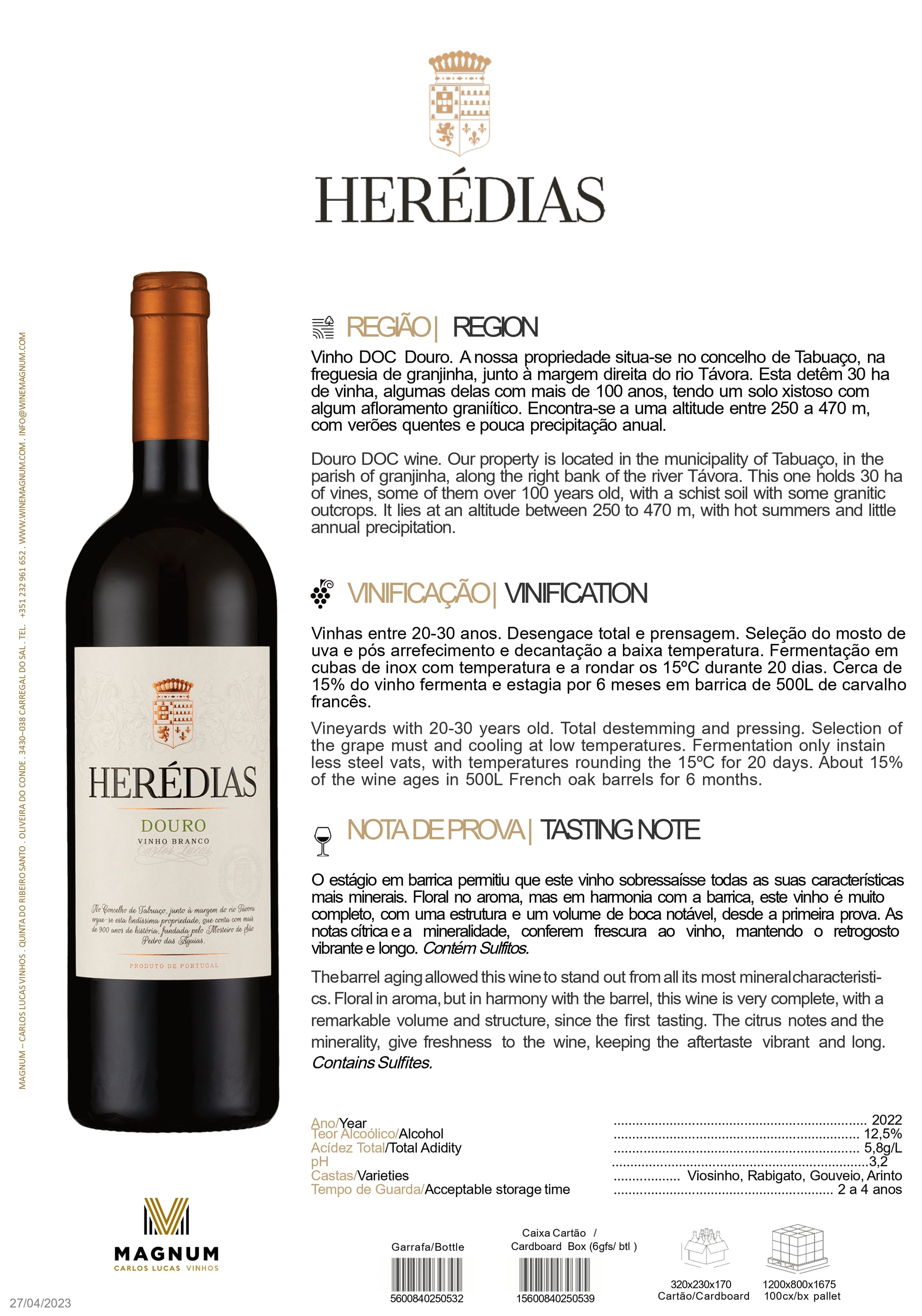 O estágio em barrica permitiu que este vinho sobressaísse todas as suas características mais minerais. Floral no aroma, mas em harmonia com a barrica, este vinho é muito completo, com uma estrutura e um volume de boca notável, desde a primeira prova. As notas cítrica e a mineralidade, conferem frescura ao vinho, mantendo o retrogosto vibrante e longo.